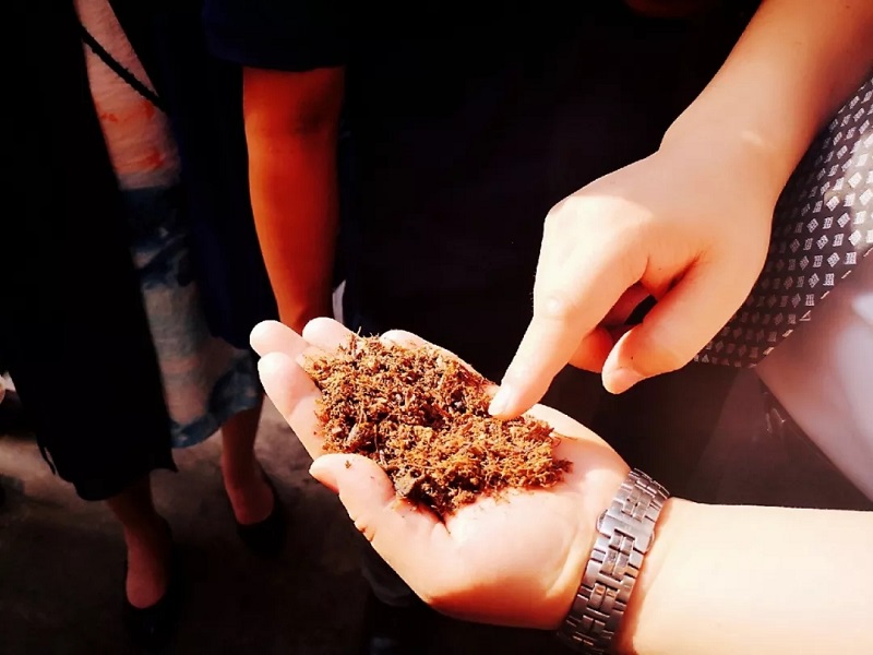 餐廳負責人在殘廚處理間隨手抓起一把加工后的廚余垃圾干料,向來訪嘉賓詳細介紹,“你看這里頭沒有殼,也沒有塑料制品,分解得非常好,這是我們的一大亮點。”