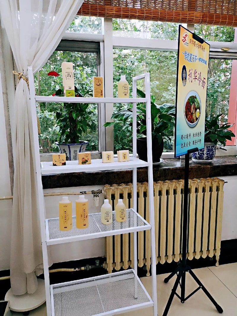 院部餐廳不像一般的機關單位餐廳那樣“板著面孔”,各種活動都少不了吸人眼球的宣傳,廣告語搖曳生姿:有“珍惜一飯一餐”,鄭重其事號召光盤打卡;也有“服務無止境,便捷樂無憂”,輕松活潑地宣傳主食外賣服務;簡易貨架上的地方特產,全部來自餐廳定向扶貧的西部省份,也是有“內涵”與擔當的餐廳。