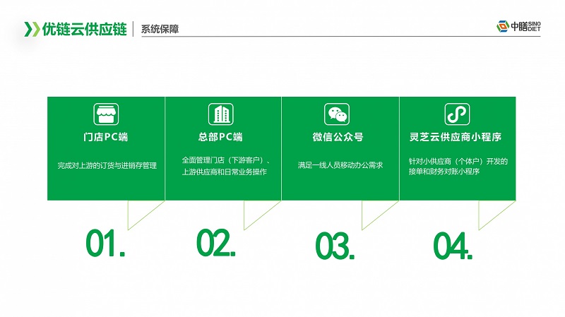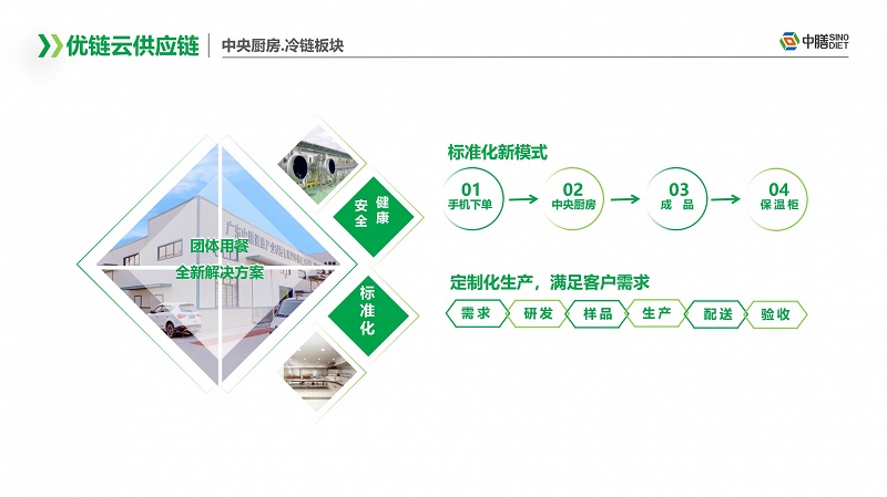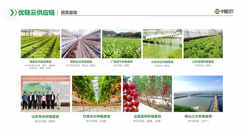 中膳優鏈云供應鏈以強大的資源優勢,采用基地直配,一體倉配,打造一個面向團餐行業的全品類、全鏈條、全業態的綜合供應鏈服務平臺。